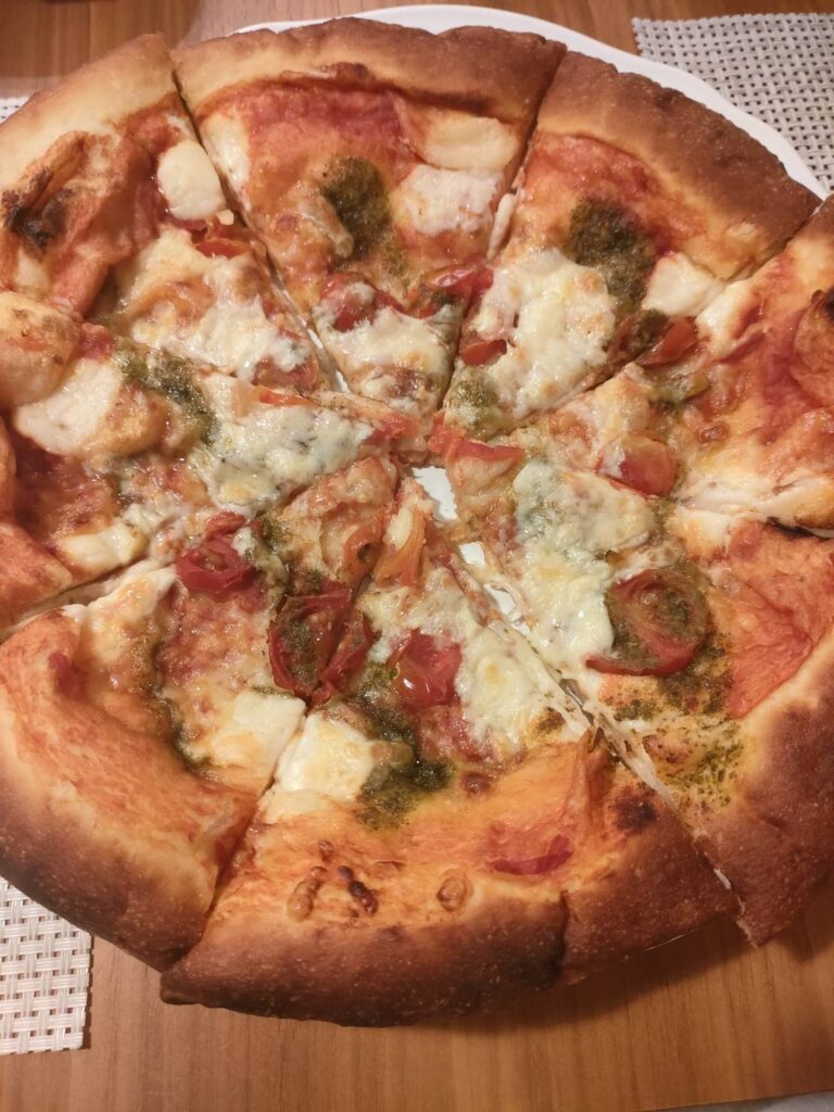 生のバジルをトッピングしたいところでしたがプランター栽培のバジルは虫に食われて丸坊主なので残念ながら出来ませんでした