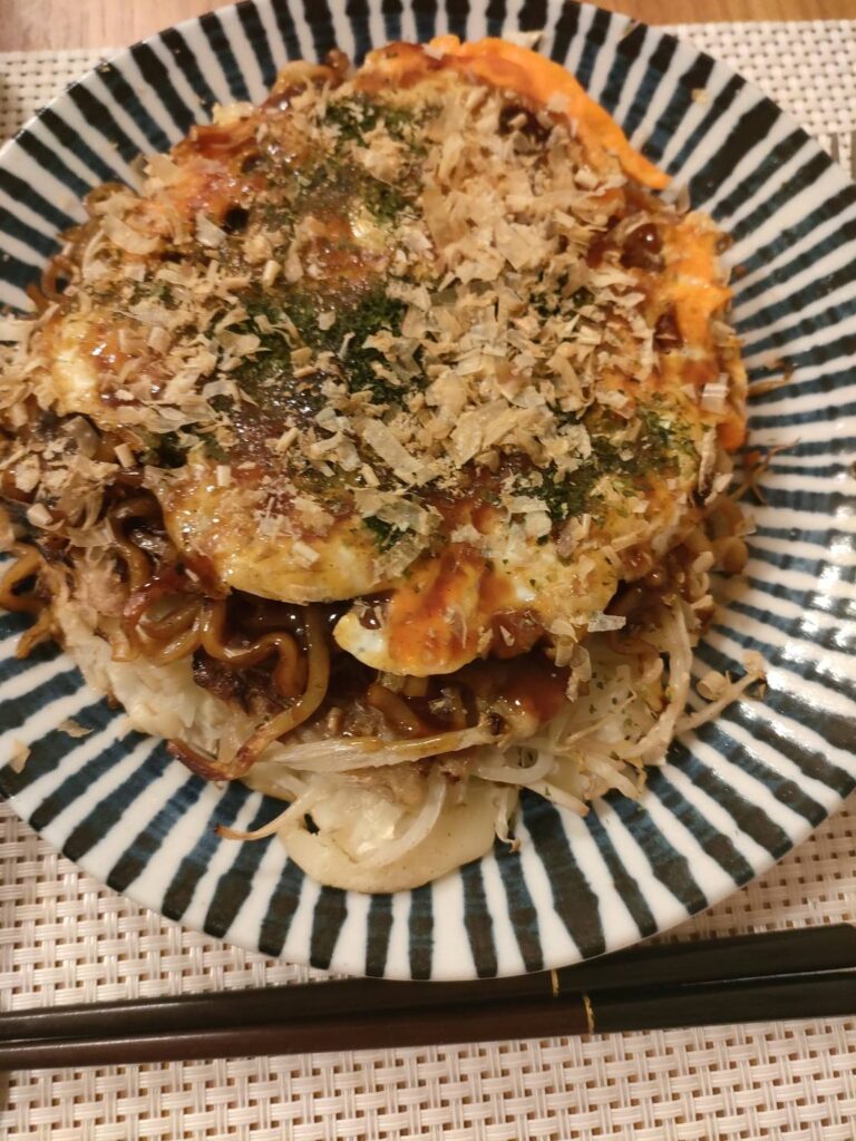 夕飯は広島お好み焼き