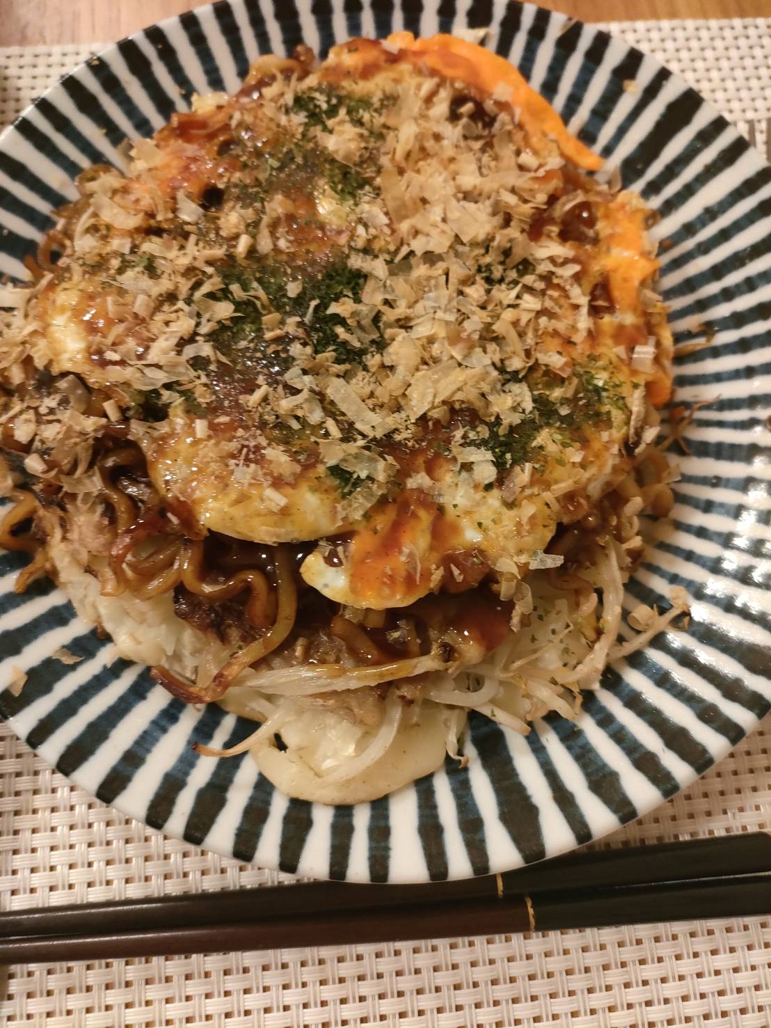 ひっくり返す時にズレてしまったので麺がかなり見えていますが味には問題ありません