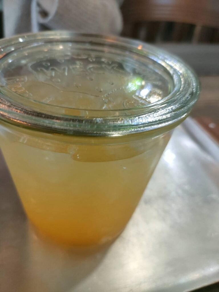 桃サイダーとアイスコーヒーを頼んで2階でお茶にしました