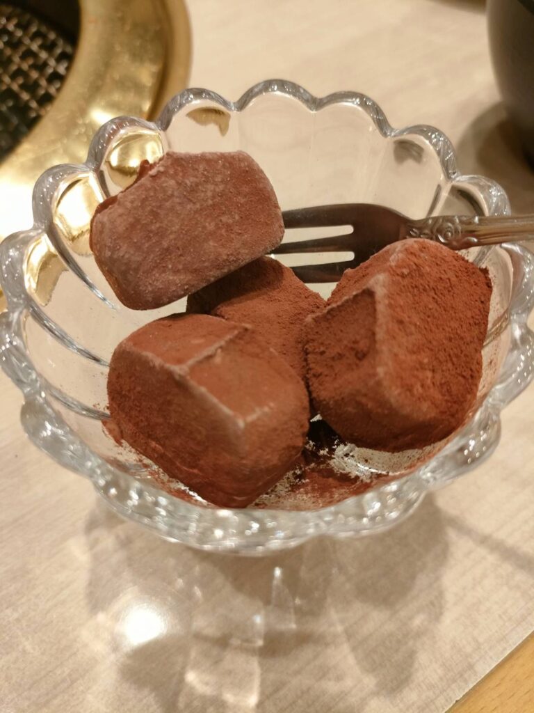 結局、ご飯も食べ終わりスープはいらなくなってしまったので温かいお茶をいただいた後 暇なのでチョコのデザートをいただきました