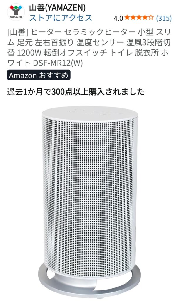 違う型ですが山善のセラミックファンヒーターをヨドバシカメラで試してみましたがとても性能が良さそうでした