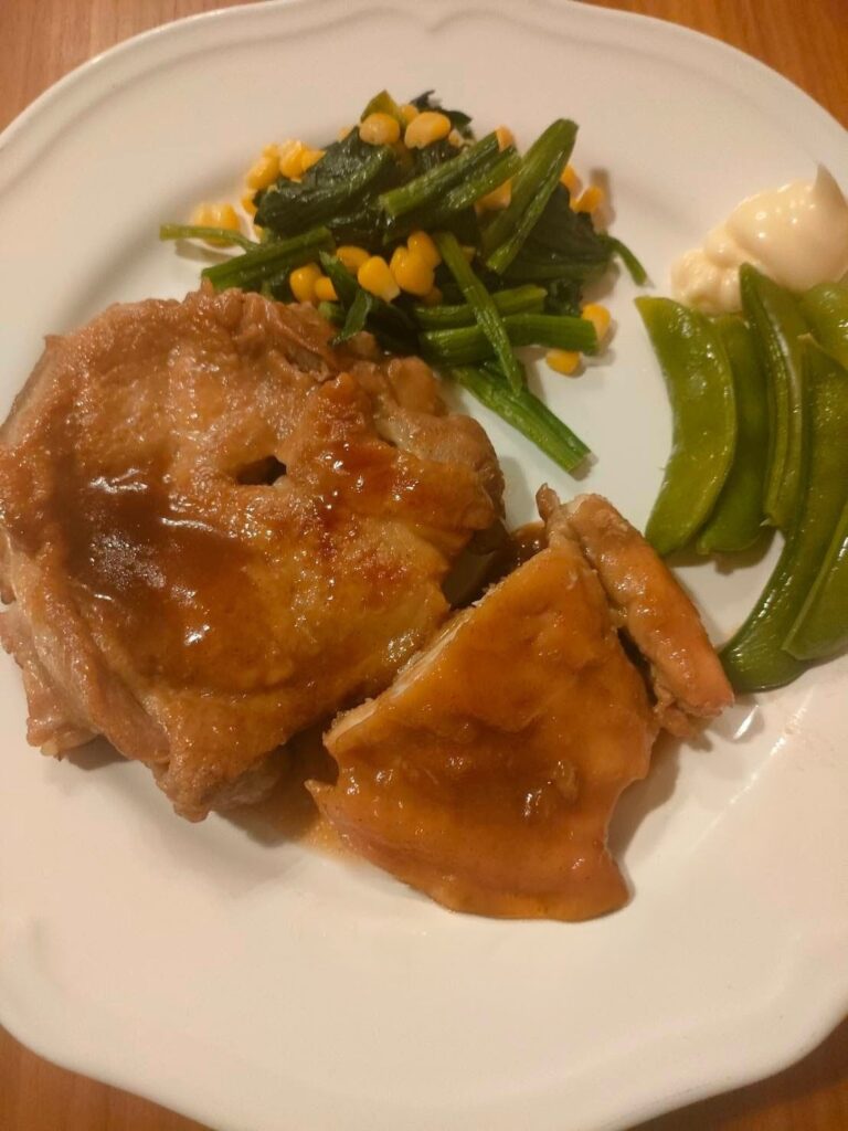 ほうれん草とコーンソテー、スナップエンドウを添えました