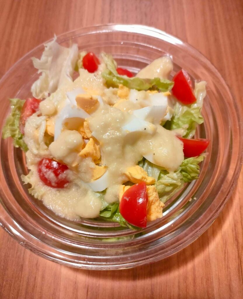 玉ねぎドレッシングをかけましたが作りたてだったのでやや苦味がありました