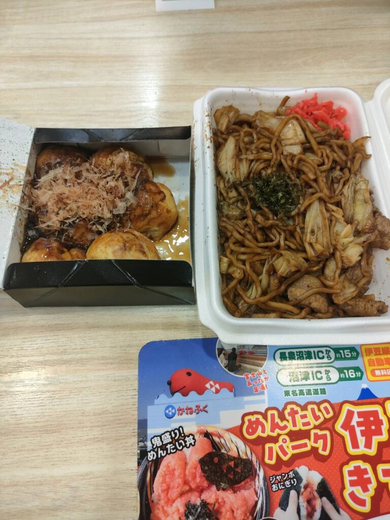ブンブン振りながら持っていたのでたこ焼きが寄ってしまいました