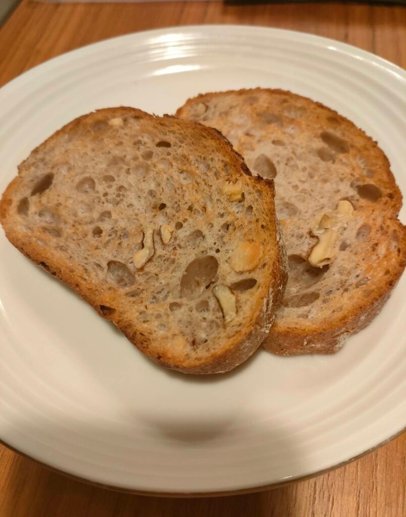 スーパーのライフで買ってきましたがクルミとナッツの歯ごたえが良く美味しいパンでした