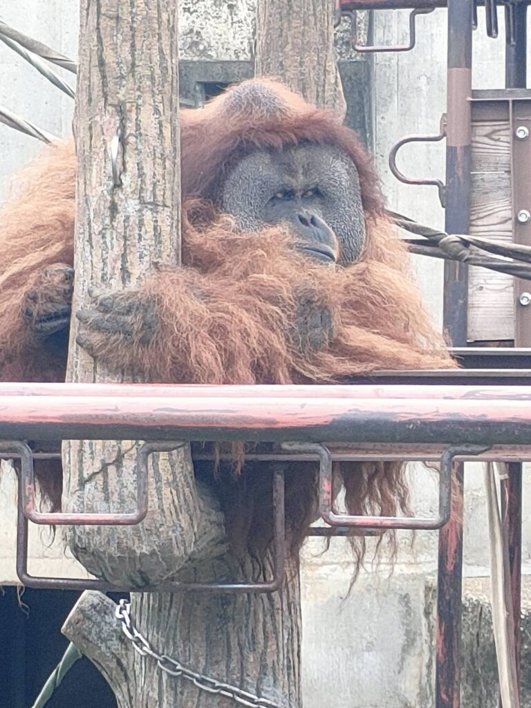 先輩が言うにはこちらの動物園のオランウータンは動きが活発で愛嬌があるそうです
