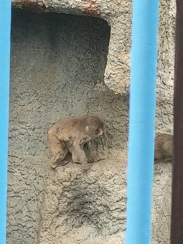 レストランは大混雑なので休憩室でお昼をとり(バスの待ち時間にサンドイッチとおにぎりを購入)暫く振りなので近況報告している間に雨が上がり再び猿山に行きザックリ見回しました