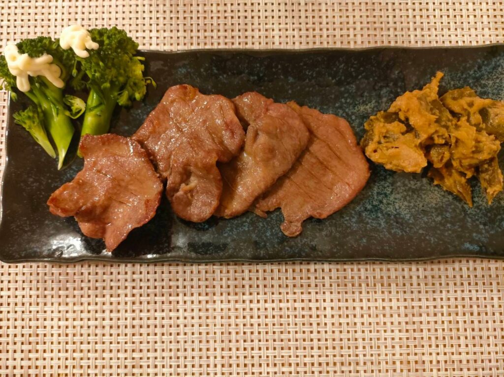 2人で食べるには全く足りないので私はタン塩を1枚だけいただきホタテ貝柱を解凍してバターソテーとお刺身で